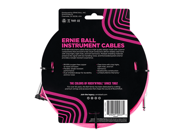 Blindaje doble.Envoltura de tela trenzada.Libre de oxigeno (OFC).Recto / En ángulo.Color: Rosa neon.Longitud: 5.49 metros.