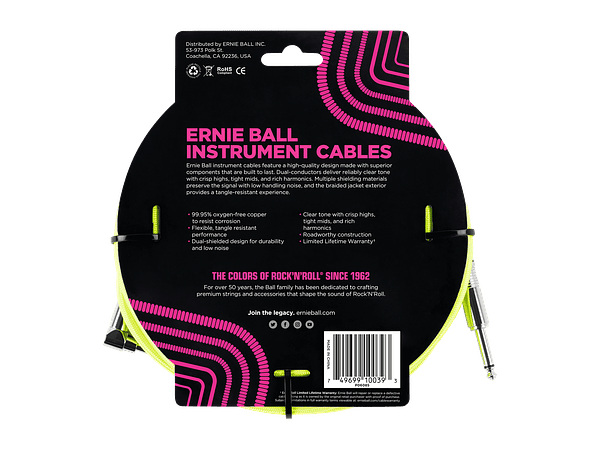 Blindaje doble.Envoltura de tela trenzada.Libre de oxigeno (OFC).Recto / En ángulo.Color: Amarillo neon.Longitud: 5.49 metros.