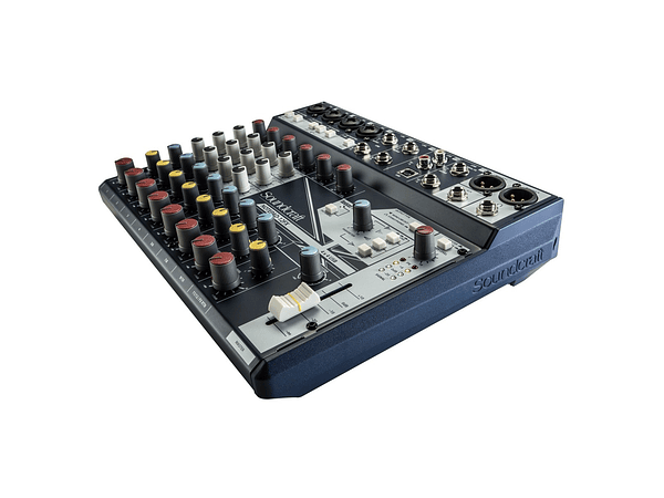 El NotePad 12Fx de Soundcraft es una consola pasiva con una estructura resistente, ligera y compacta fácil de transporta, posee 4 canales preamplificados con phantom power y 4 efectos lexicon (chorus, delay, reverb y karaoke).Esta consola puede ser utilizada tanto en escenarios como una interfaz de audio por su puerto USB para realizar podcast (grabaciones de radio), cada canal posee un ecualizador de 3 bandas (alto, medio y bajos) y un paneo (L + R).