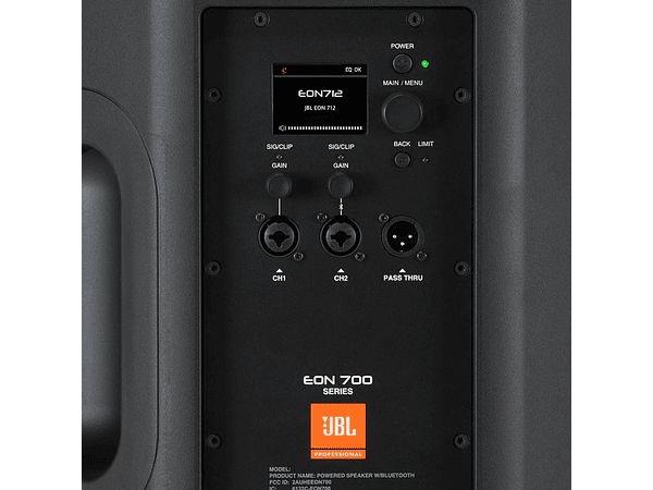 Este nuevo modelo posee un woofer de 12 pulgadas, bocina de alta frecuencia rediseñara y una potencia en rms de 650w. Una de sus nuevas y mejoradas características es que posee bluetooth para ecualizar a través de la app incluida de JBL y transmitir audio, además su función de atenuación permite disminuir el volumen si detecta voz. Cuenta con un control de volumen master, dos canales con control de volumen independiente y una conexión para puentear otro parlante Eon 712 (copia de señal).