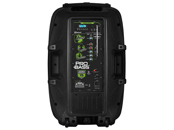 EL Underground 15 de Probass es un parlante activo que entrega 100w rms y posee un woofer de 15 pulgadas. Este parlante está diseñado para que lleves la fiesta donde quieras ya que, posee una batería interna, manilla y ruedas para su fácil transporte. Cuenta con un puerto USB, SD y bluetooth para reproducir la música que más quieras desde un dispositivo móvil o Tablet.