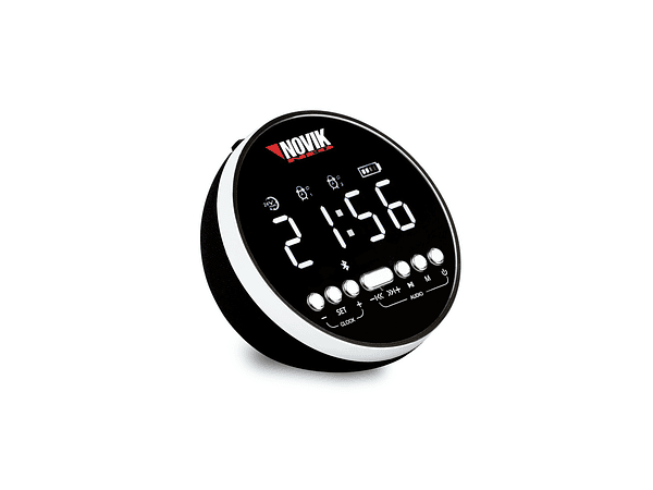 Aion de Novik es un parlante portátil que funciona también como alarma digital con dos modos de configuración en un diseño compacto y fácil de transportar con pantalla led.